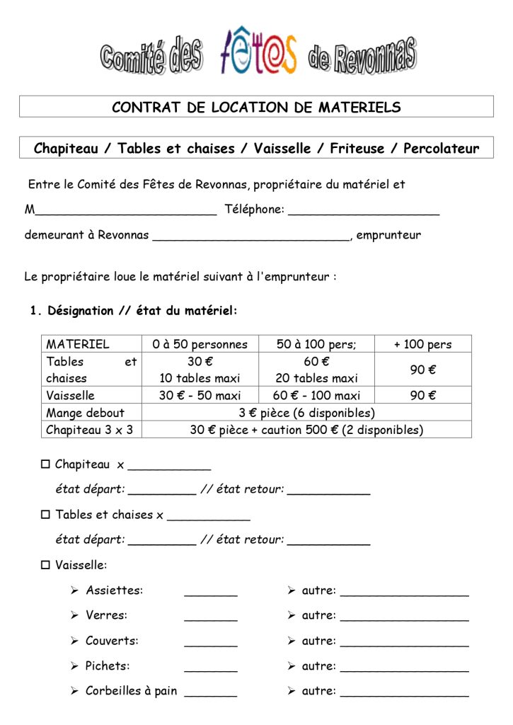 Contrat de location de matériels: