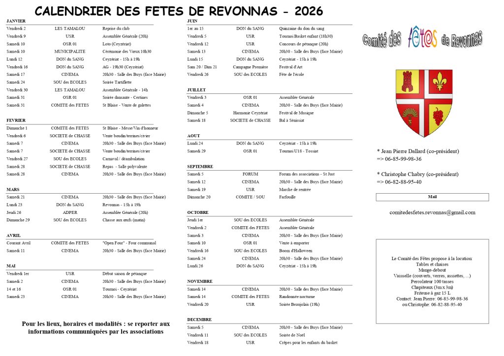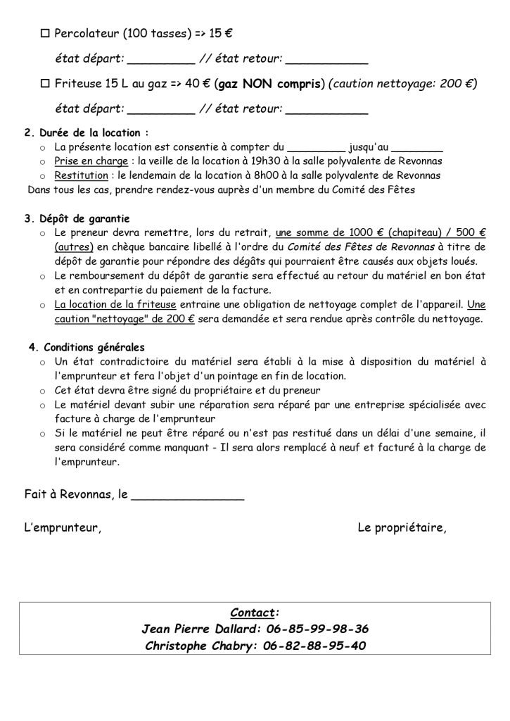 Jean Pierre Dallard (06-85-99-98-36) ou Christophe (06-82-88-95-40)