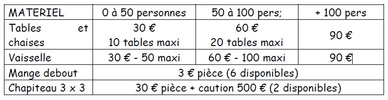 Le Comité des Fêtes organise des manifestations tout au long de l’année et s’occupe également de la location de la vaisselle, des tables et des chaises se trouvant à la salle polyvalente de la commune.